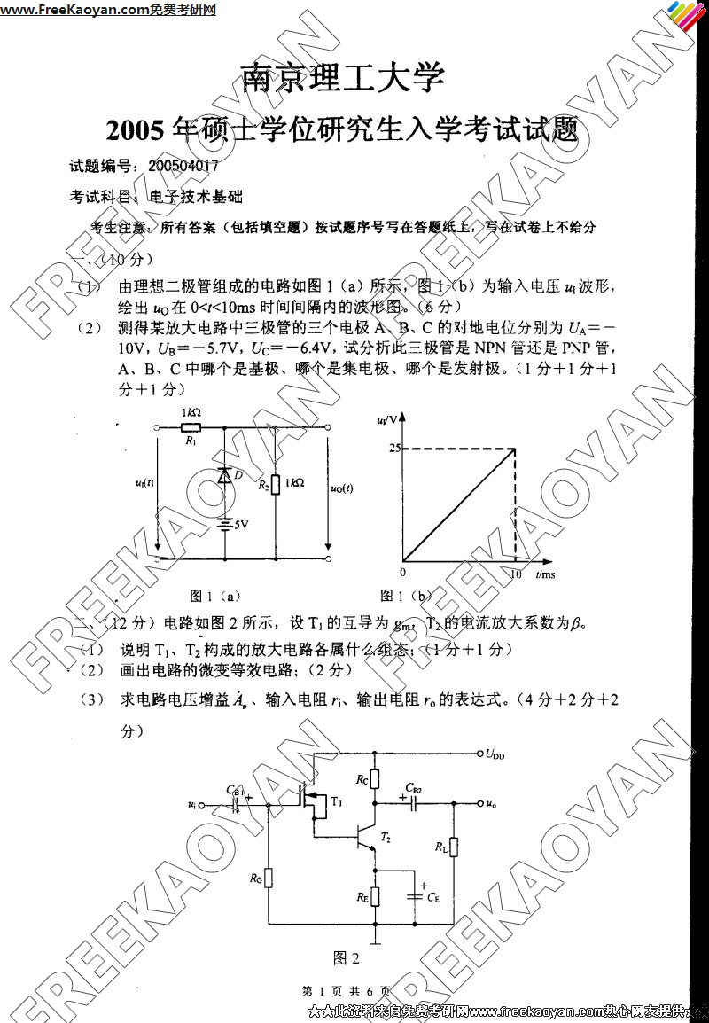 专业课半岛在线注册经验 本站小编 FreeKaoyan 2018-01-23南京理工大学2005年半岛在线注册真题-电子技术