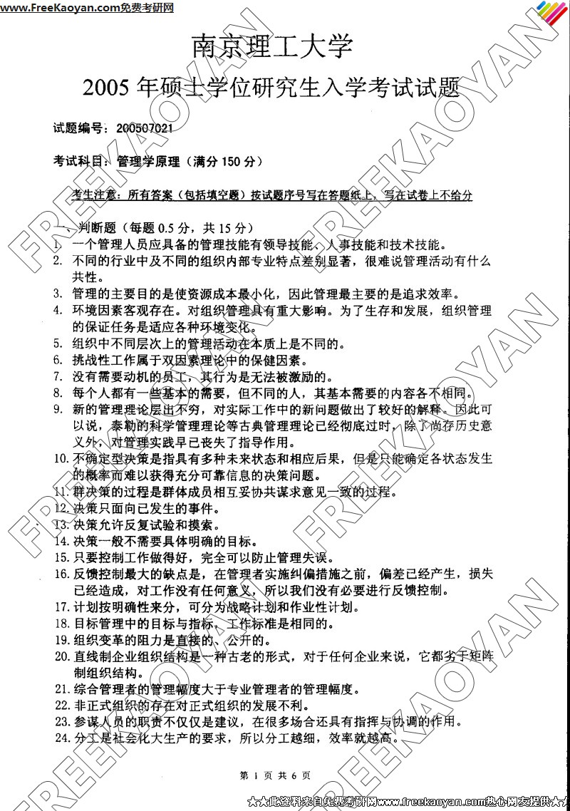 南京理工大学2005年半岛在线注册真题-管理学原理