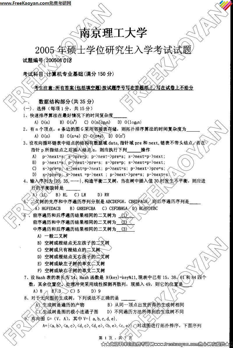 南京理工大学2005年半岛在线注册真题-计算机专业基础