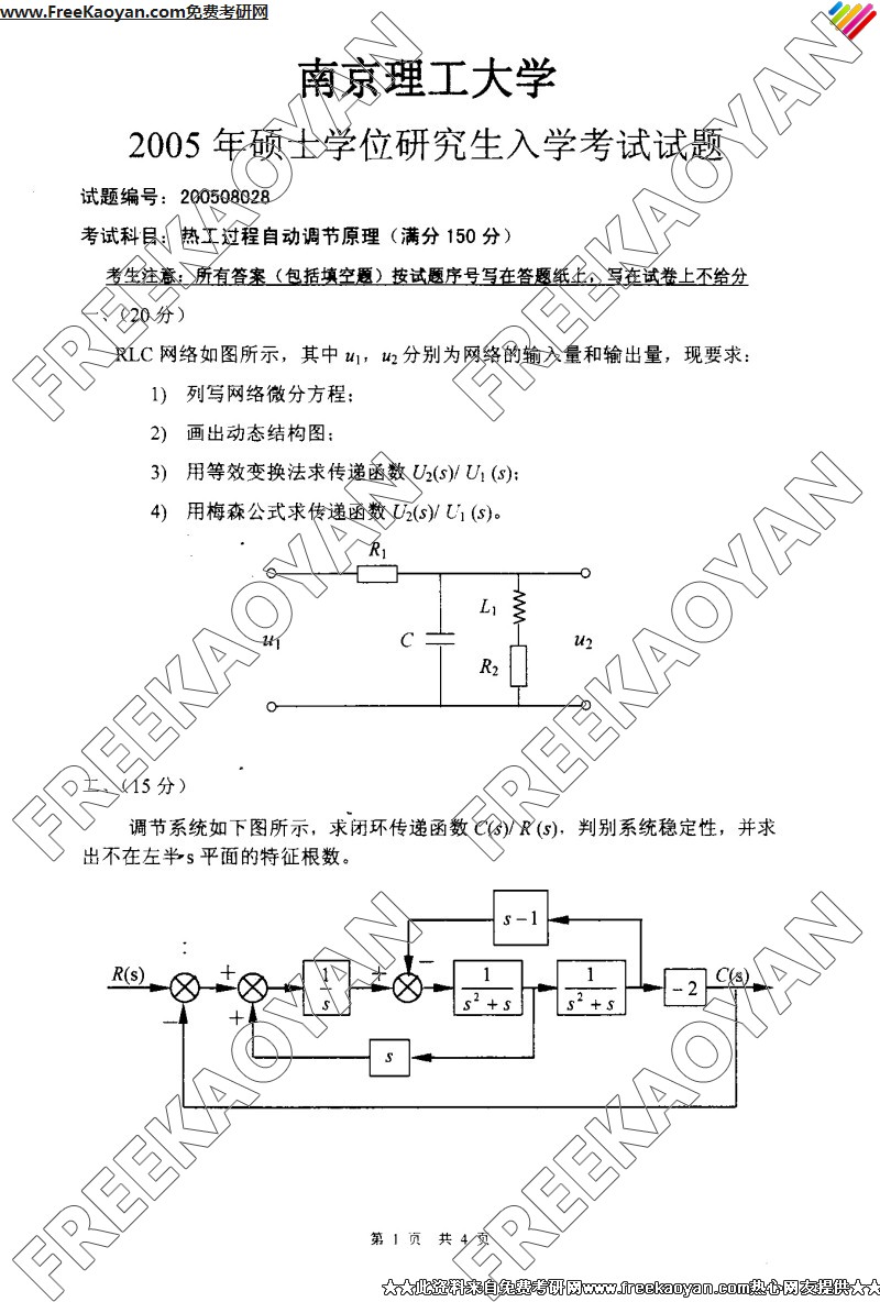 南京理工大学2005年半岛在线注册真题-热工过程自动调节原理