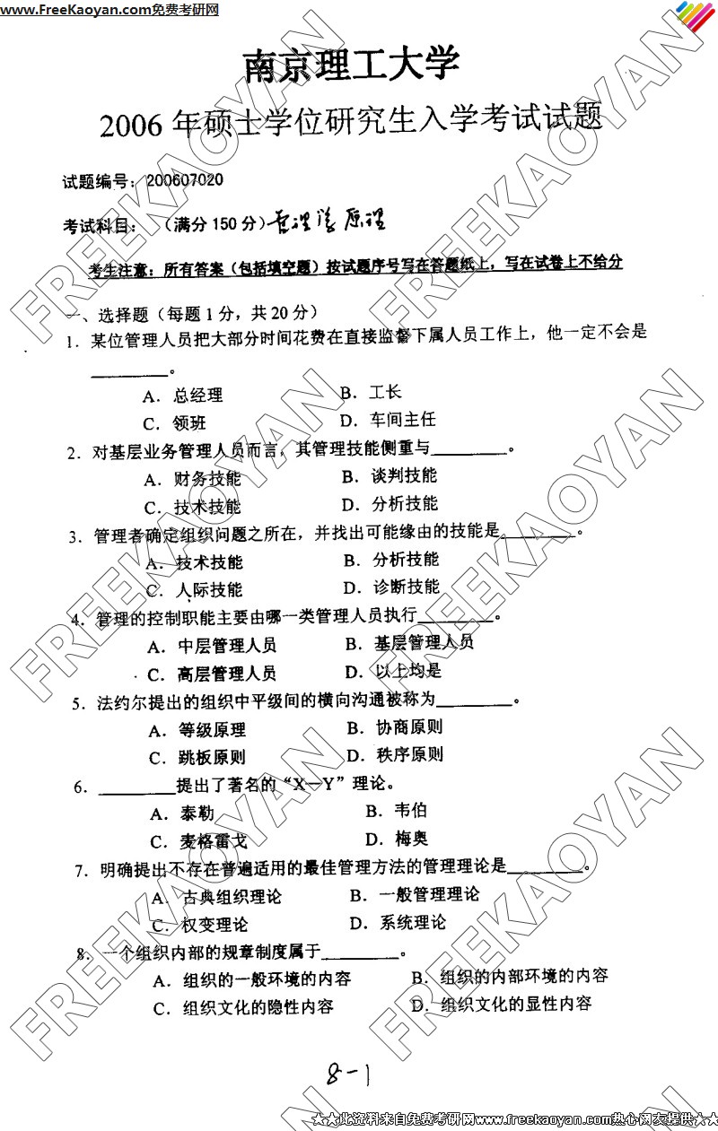 南京理工大学2006年半岛在线注册真题-管理学原理