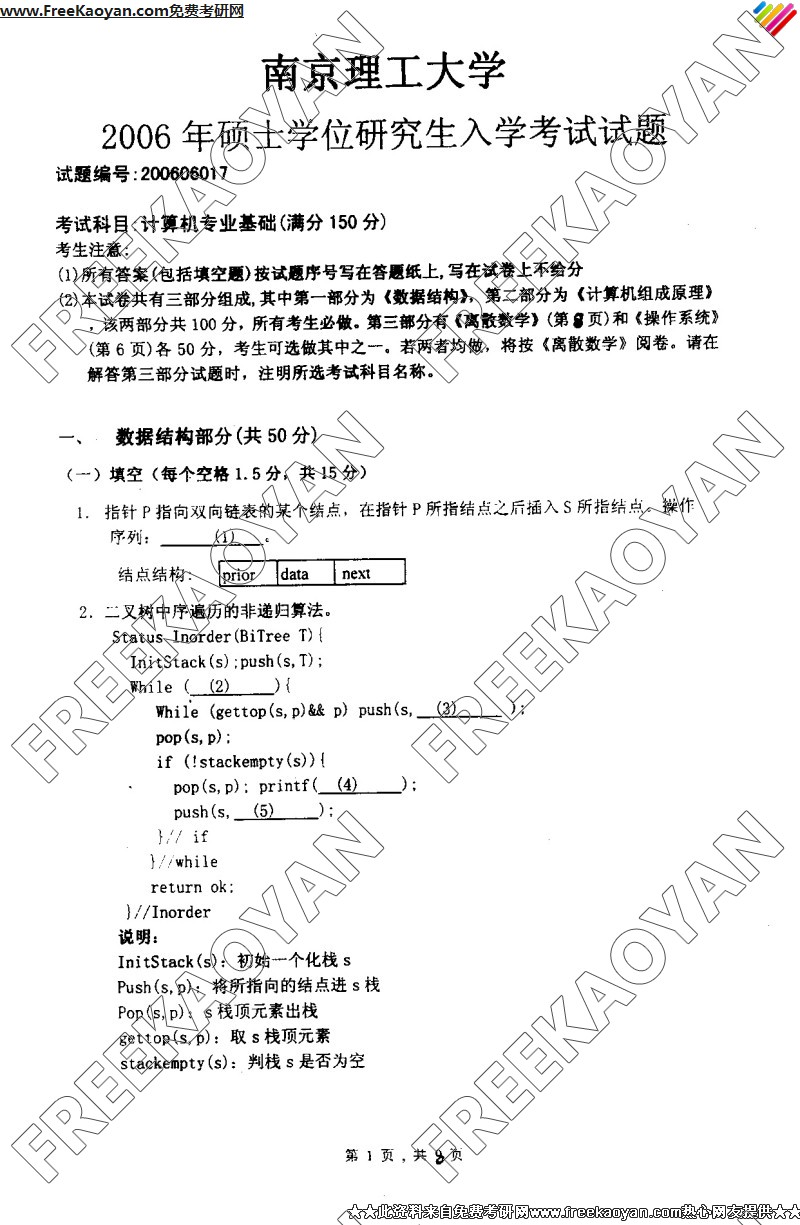南京理工大学2006年半岛在线注册真题-计算机专业基础