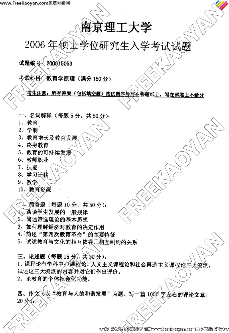 南京理工大学2006年半岛在线注册真题-教育学原理