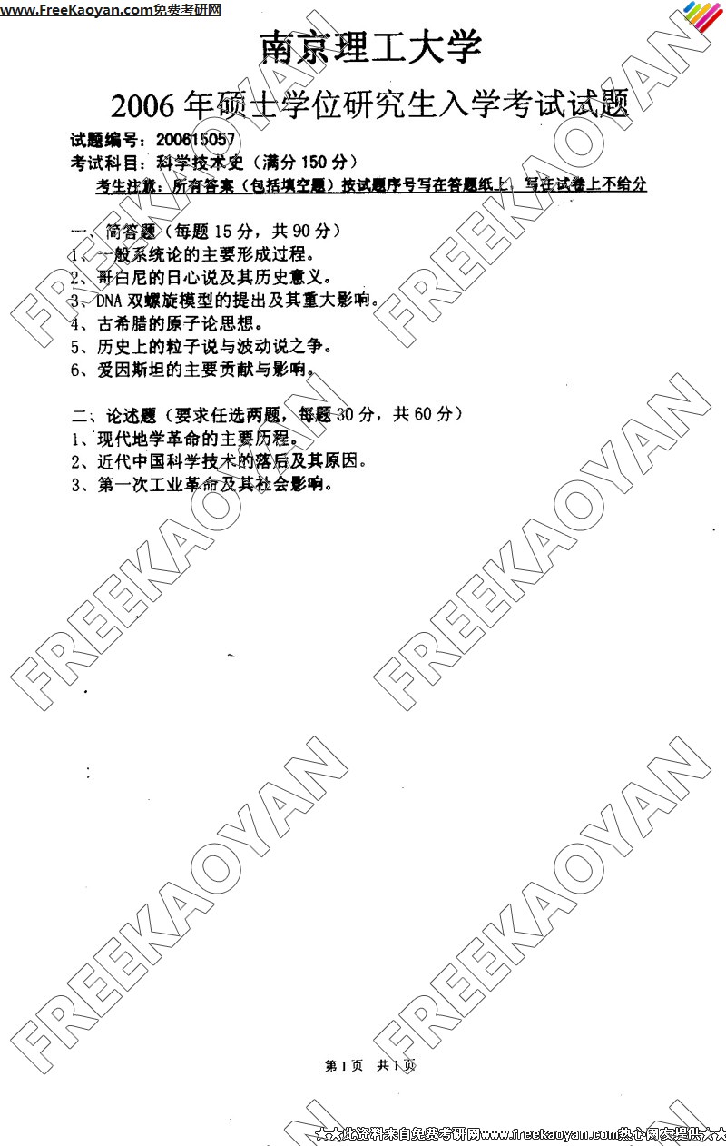 南京理工大学2006年半岛在线注册真题-科技技术史