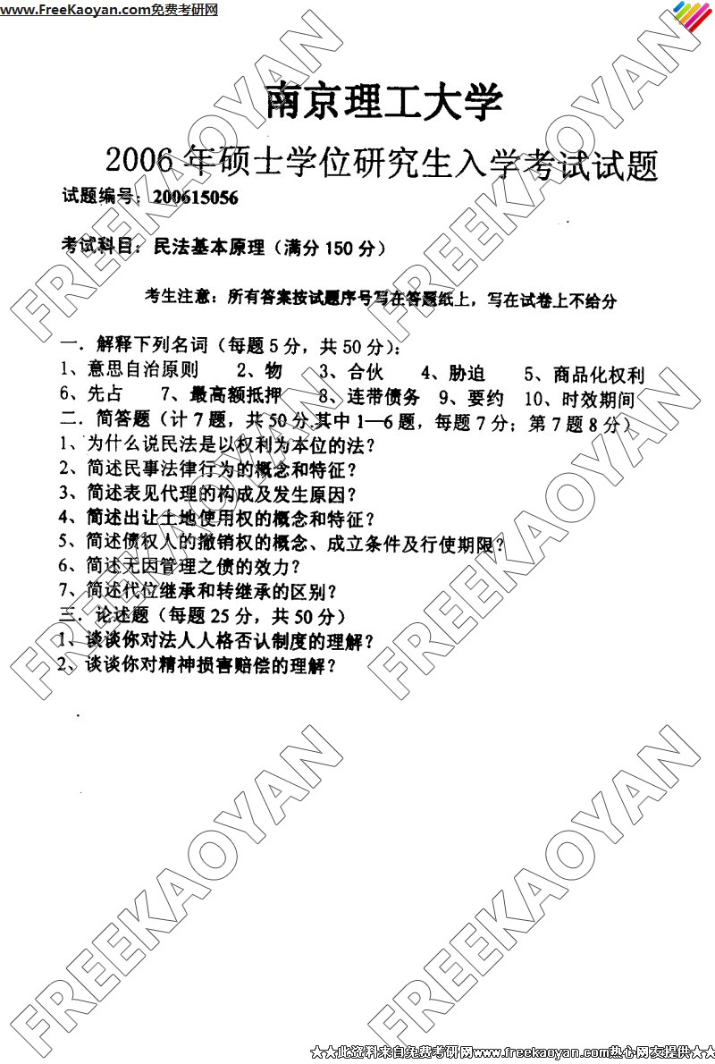 南京理工大学2006年半岛在线注册真题-民法基本原理
