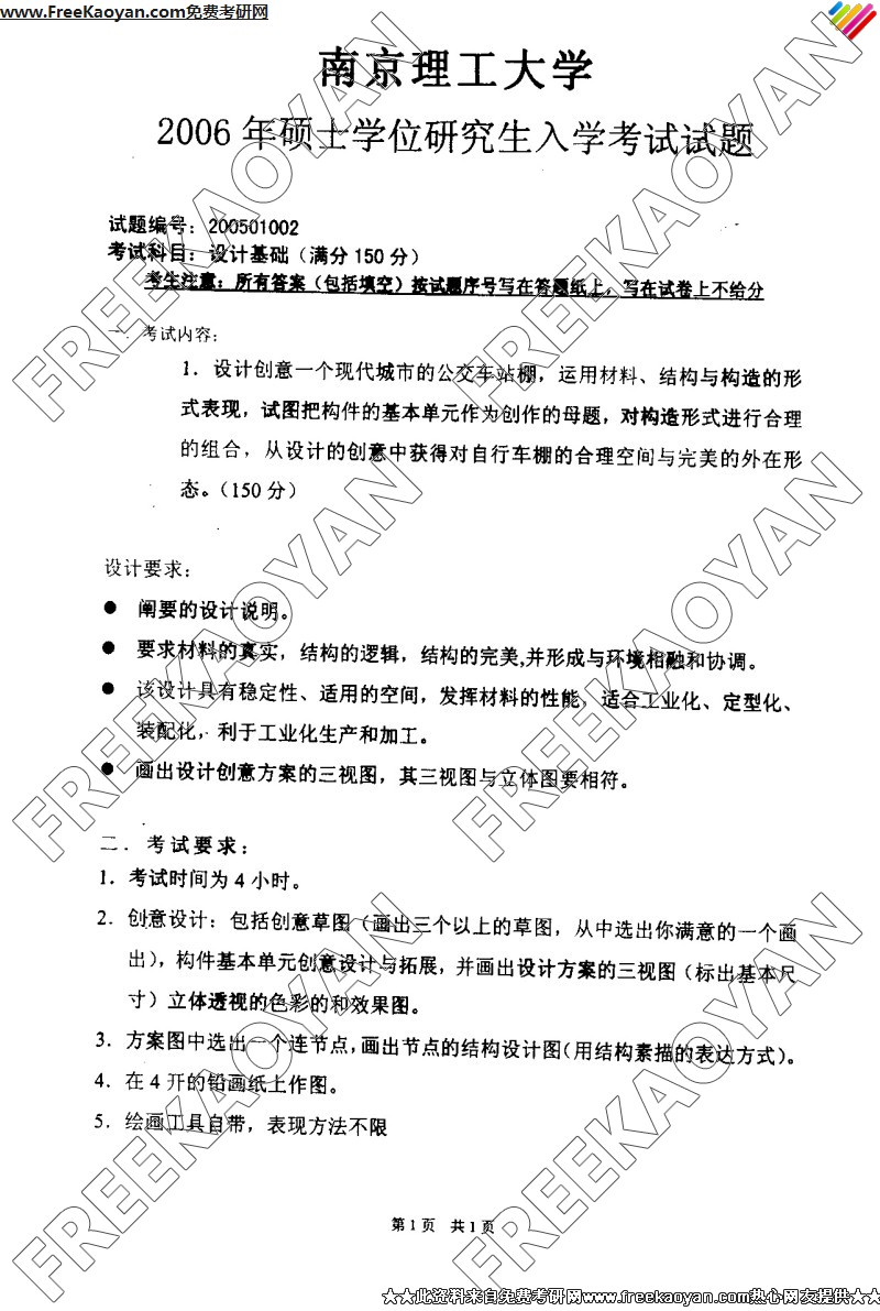 南京理工大学2006年半岛在线注册真题-设计基础