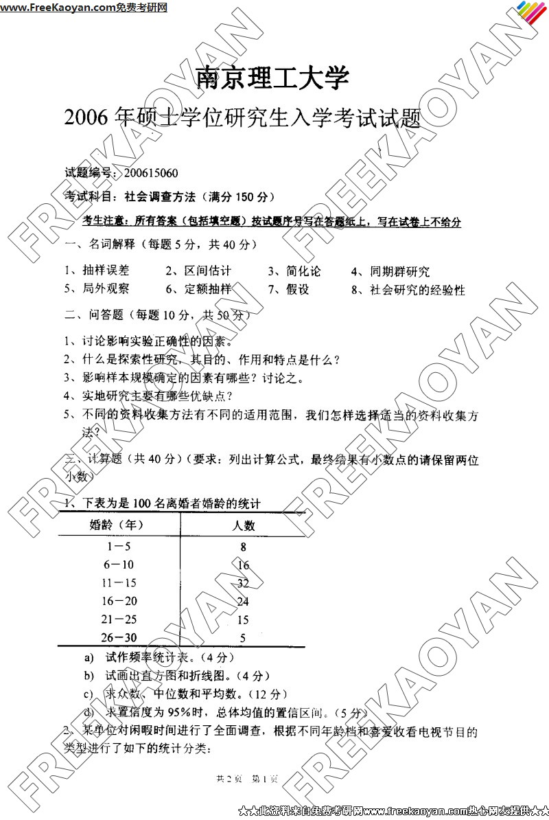南京理工大学2006年半岛在线注册真题-社会调查方法