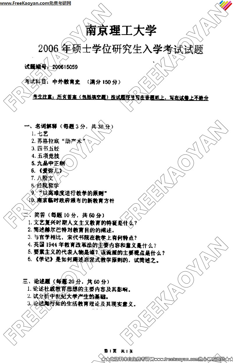 南京理工大学2006年半岛在线注册真题-中外教育史