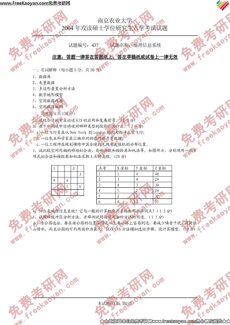 南京农业大学2004年半岛在线注册真题-地理信息系统