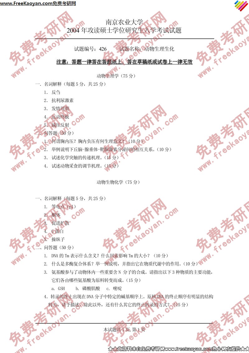 相关话题/动物 半岛在线注册真题 南京农业大学 生理 生化