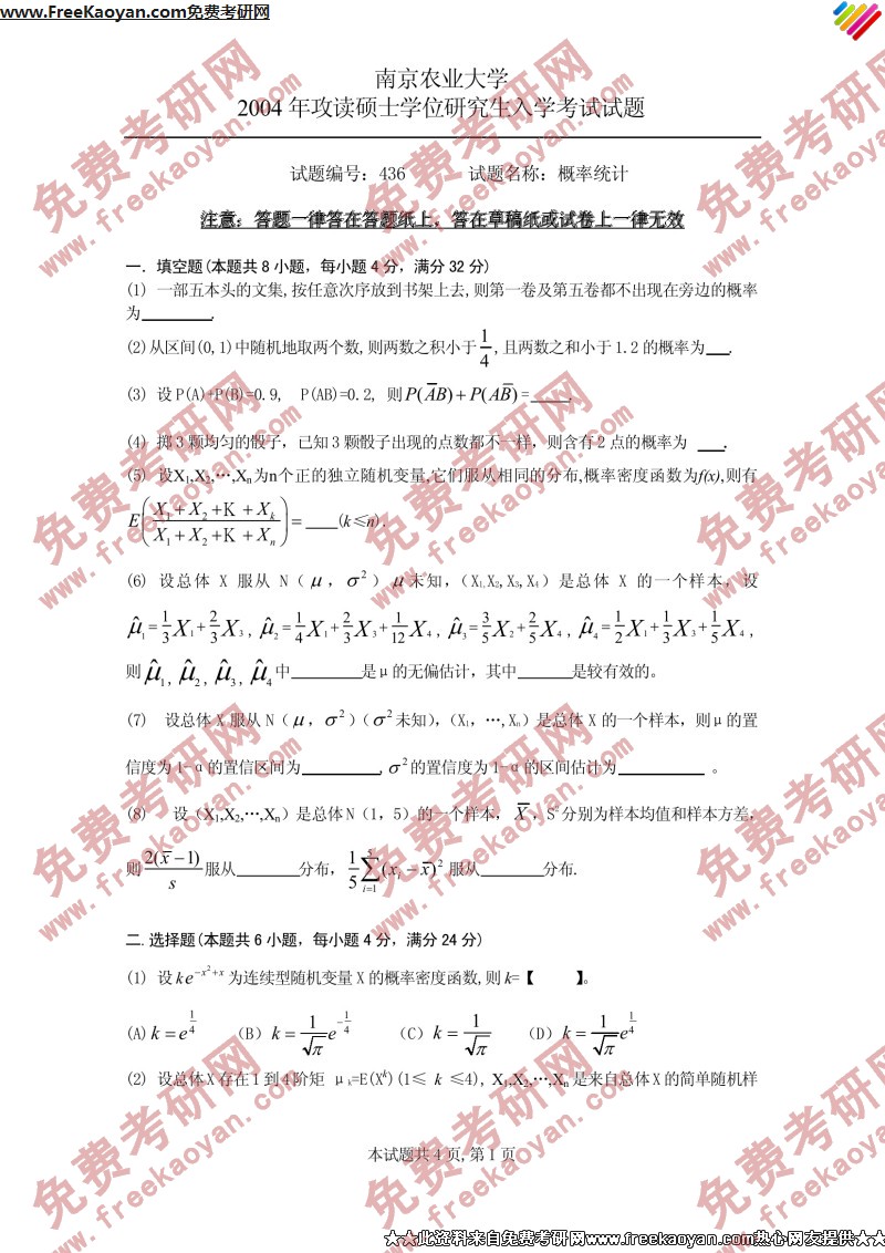 相关话题/半岛在线注册真题 南京农业大学 统计 概率