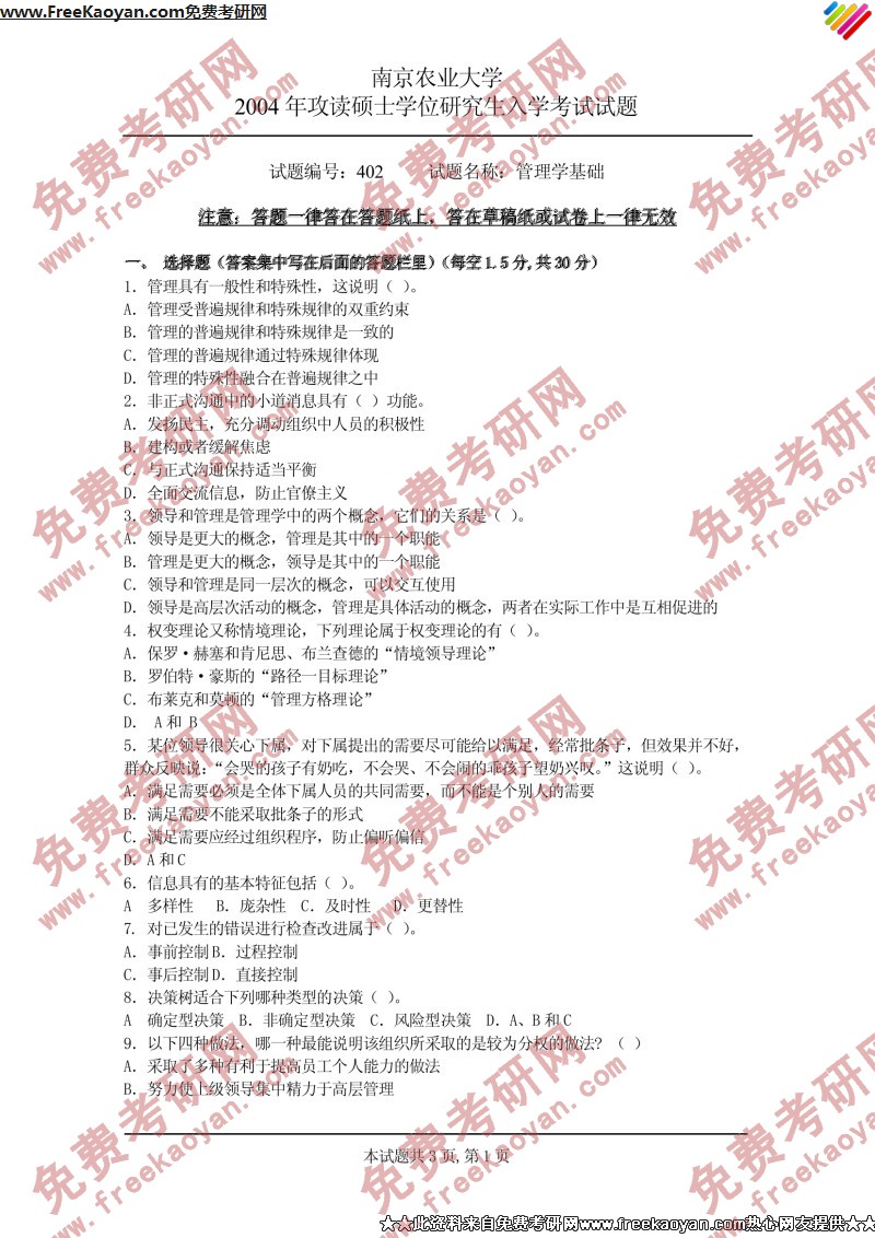 南京农业大学2004年半岛在线注册真题-管理学基础