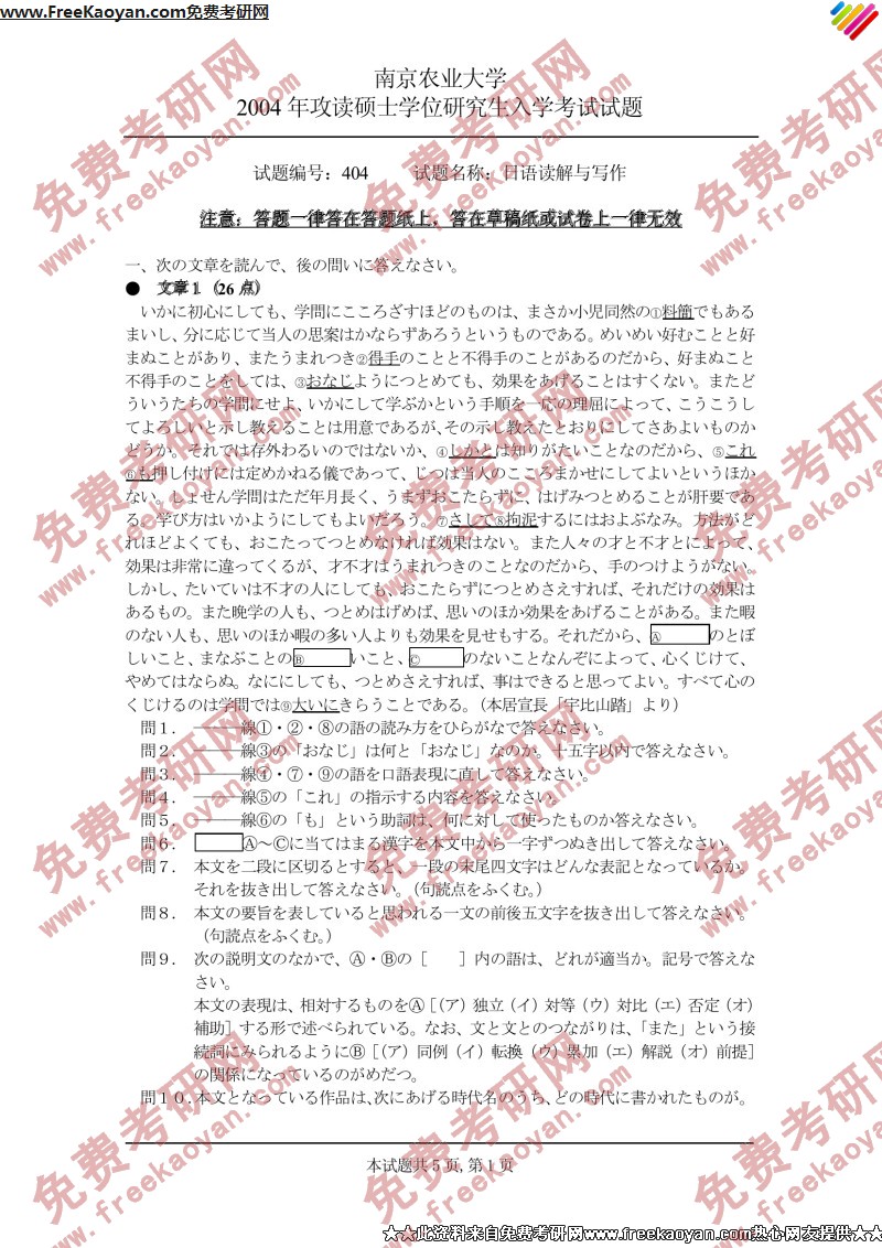 南京农业大学2004年半岛在线注册真题-日语(单)