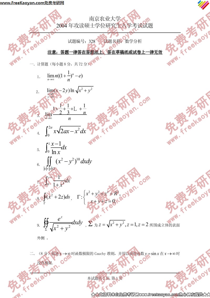 相关话题/南京农业大学 半岛在线注册真题 数学分析