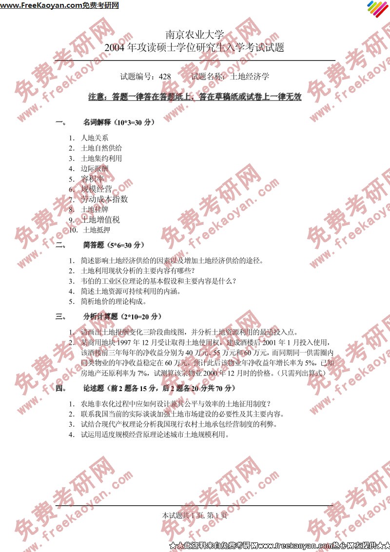 相关话题/半岛在线注册真题 南京农业大学 经济学 土地