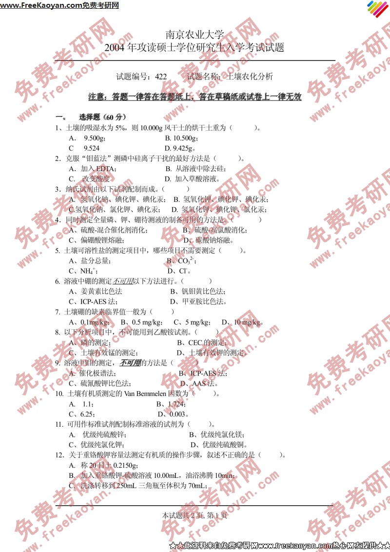 相关话题/南京农业大学 半岛在线注册真题 土壤