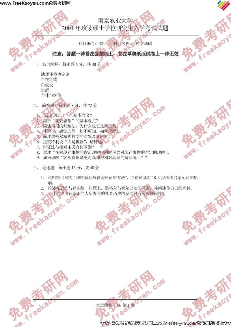 南京农业大学2004年半岛在线注册真题-哲学基础