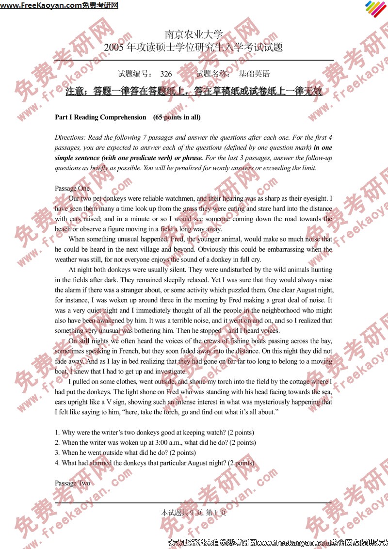 专业课半岛在线注册经验 本站小编 FreeKaoyan 2018-01-23南京农业大学2005年半岛在线注册真题-古代汉语