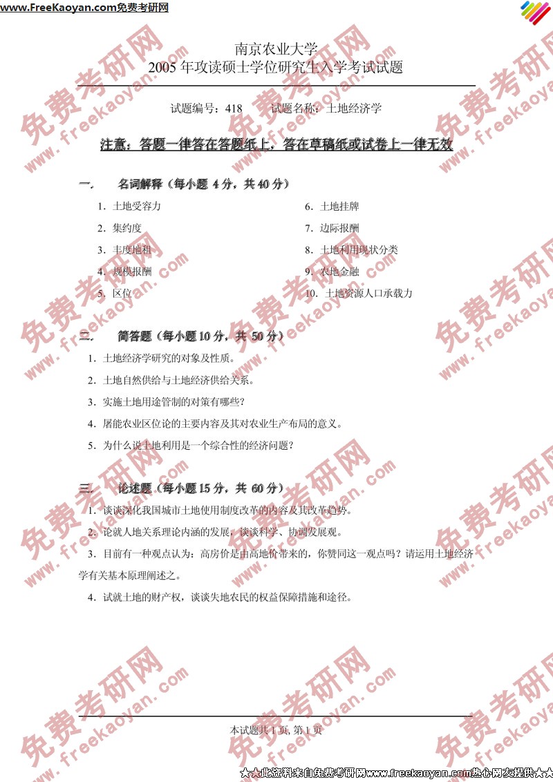 相关话题/半岛在线注册真题 南京农业大学 经济学 土地