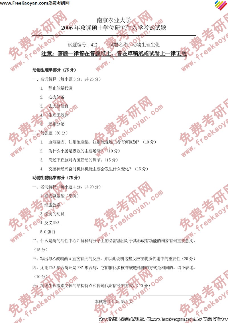 相关话题/动物 半岛在线注册真题 南京农业大学 生理 生化