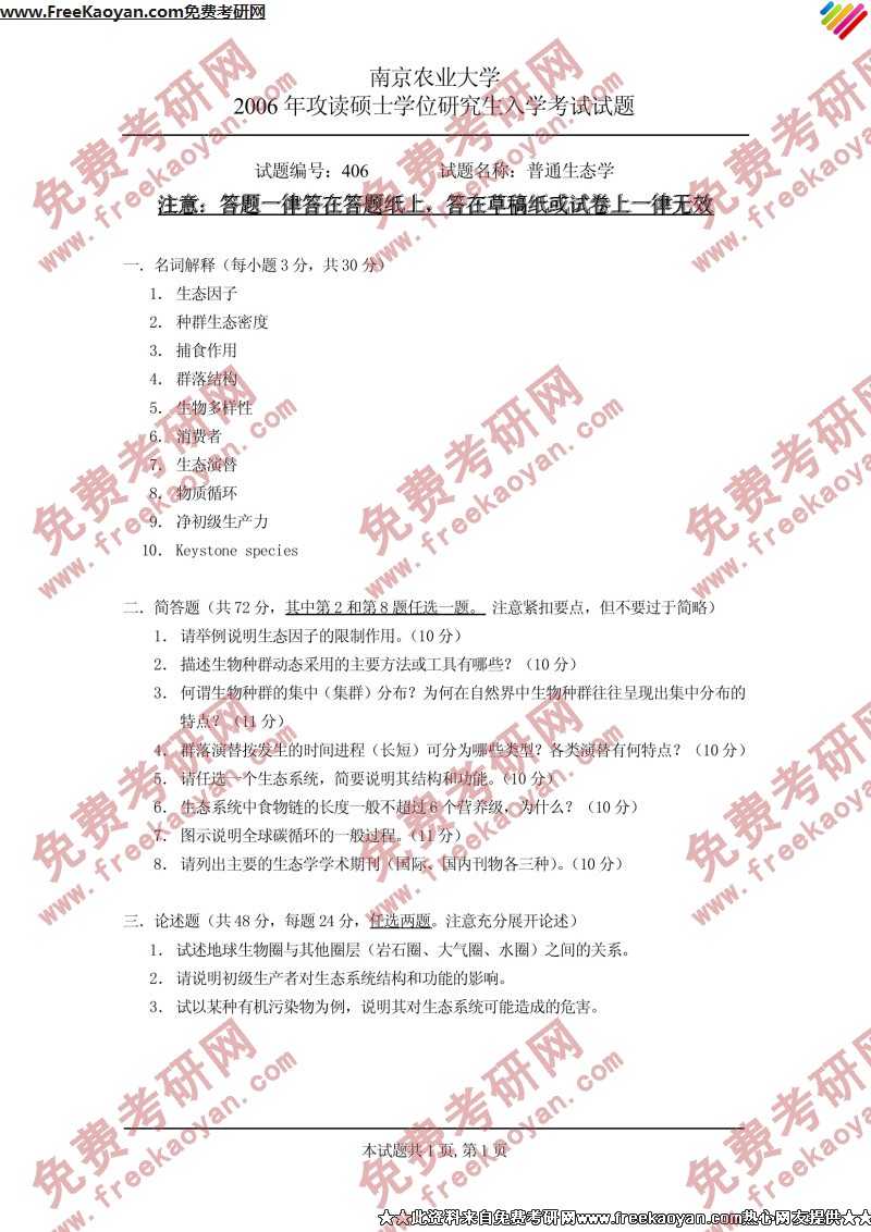 专业课半岛在线注册经验 本站小编 FreeKaoyan 2018-01-23南京农业大学2006年半岛在线注册真题-环境科学导论
