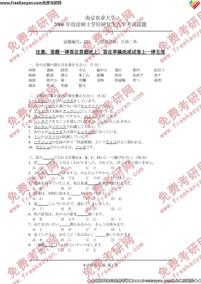 专业课半岛在线注册经验 本站小编 FreeKaoyan 2018-01-23南京农业大学2006年半岛在线注册真题-日语读解与写作