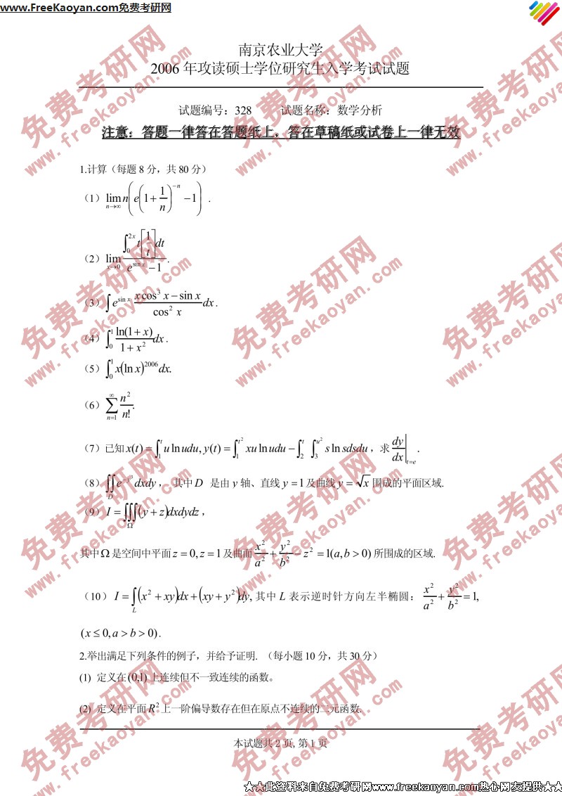 相关话题/南京农业大学 半岛在线注册真题 数学分析