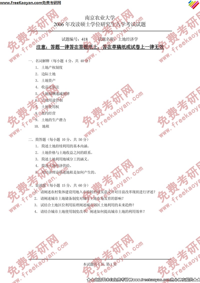 相关话题/半岛在线注册真题 南京农业大学 经济学 土地
