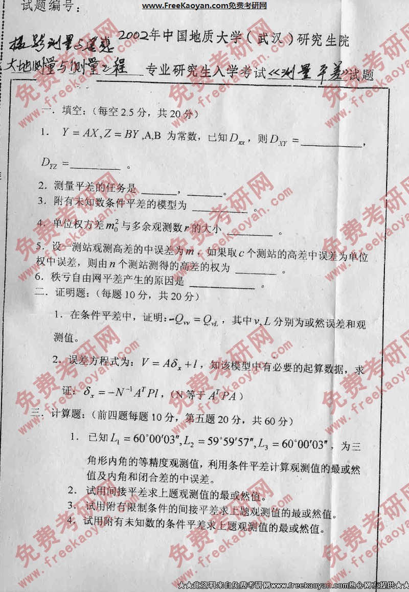 中国地质大学(武汉)2002年半岛在线注册真题-测量平差