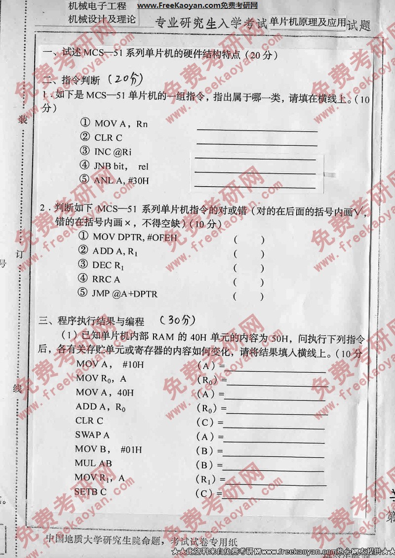 相关话题/半岛在线注册真题 单片机 中国地质大学 原理
