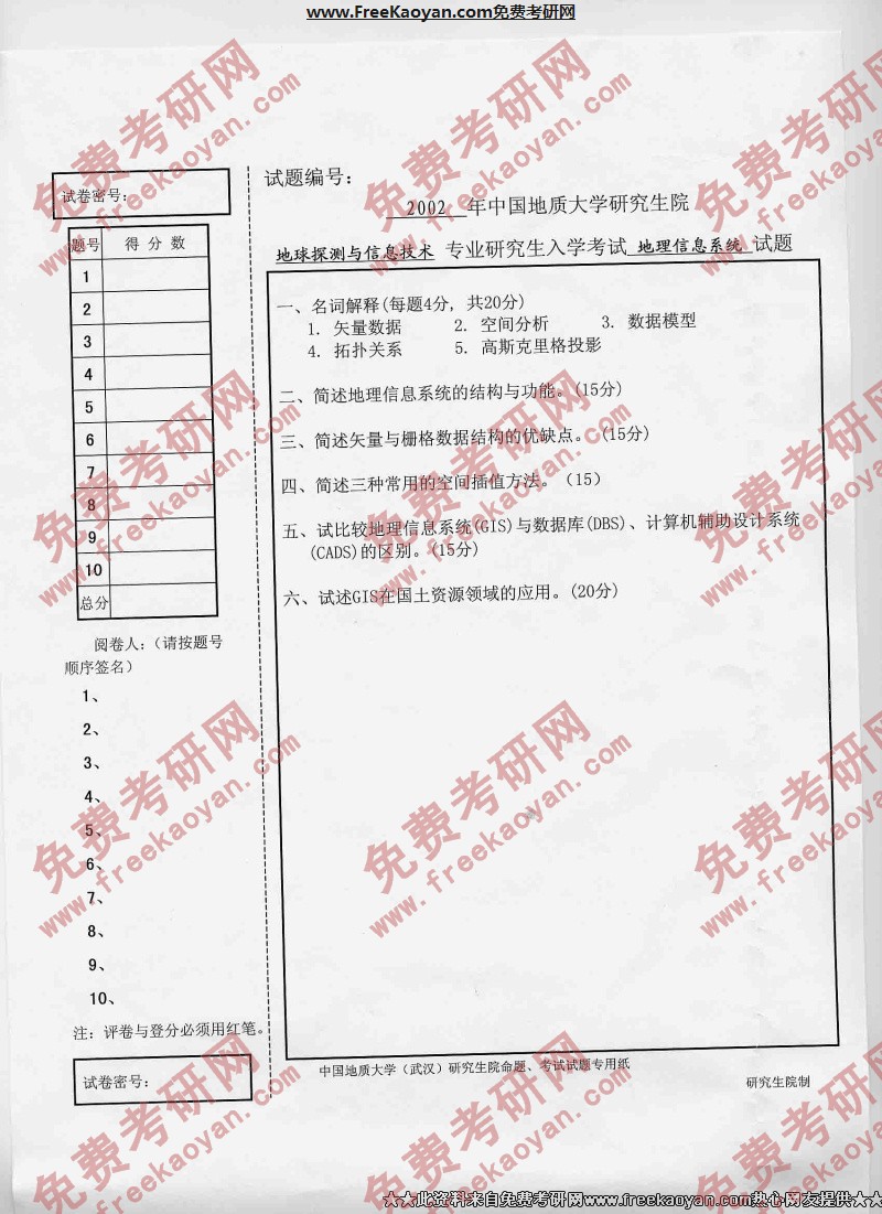 中国地质大学(武汉)2002年半岛在线注册真题-地理信息系统
