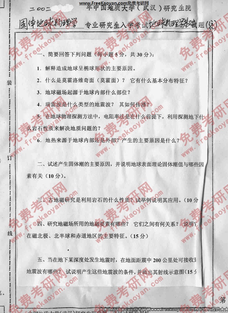 专业课半岛在线注册经验 本站小编 FreeKaoyan 2018-01-23中国地质大学(武汉)2002年半岛在线注册真题-地球物理学概论