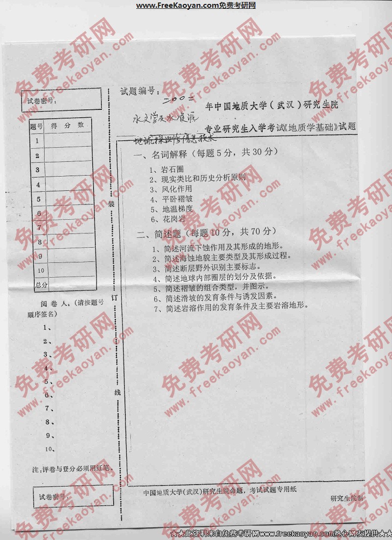 专业课半岛在线注册经验 本站小编 FreeKaoyan 2018-01-23中国地质大学(武汉)2002年半岛在线注册真题-地貌学与第四纪地质学