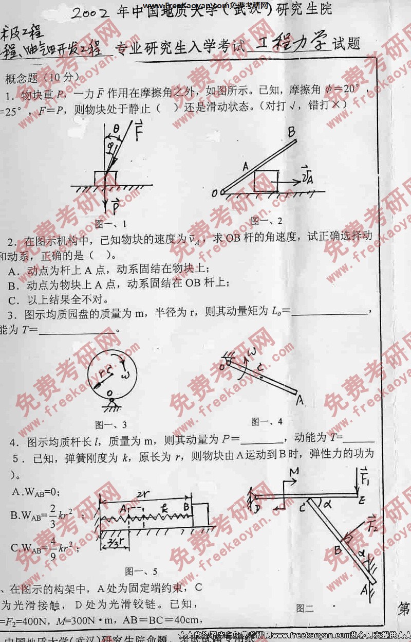 中国地质大学(武汉)2002年半岛在线注册真题-工程力学