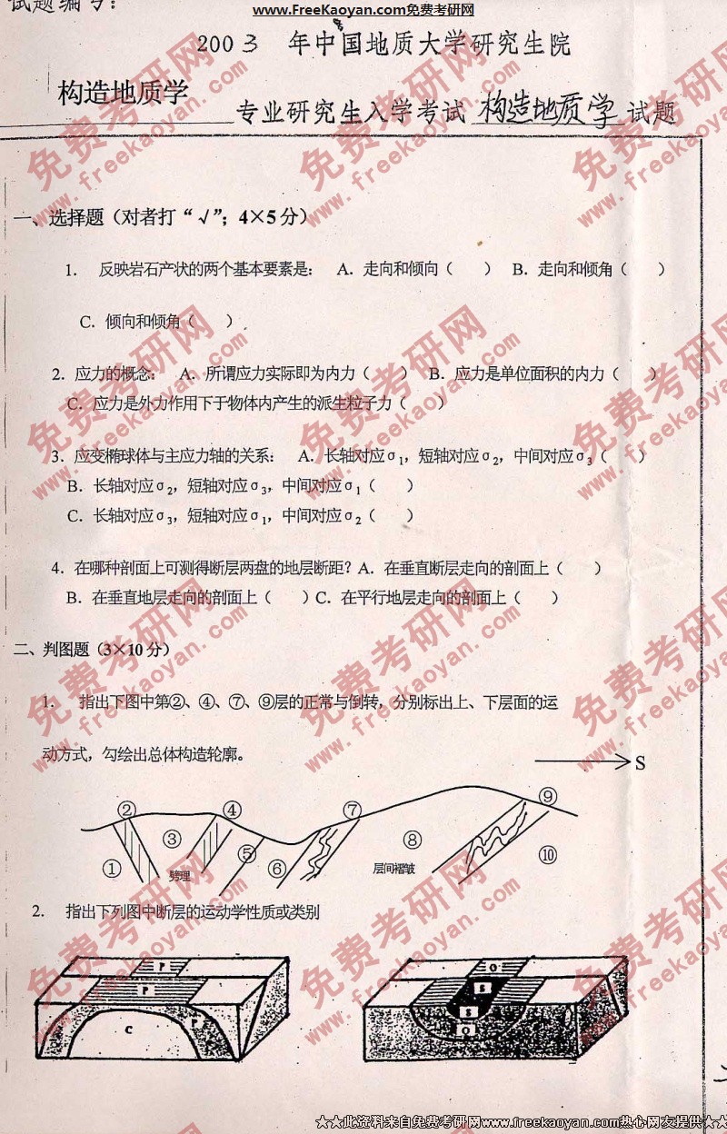 中国地质大学(武汉)2003年半岛在线注册真题-构造地质学