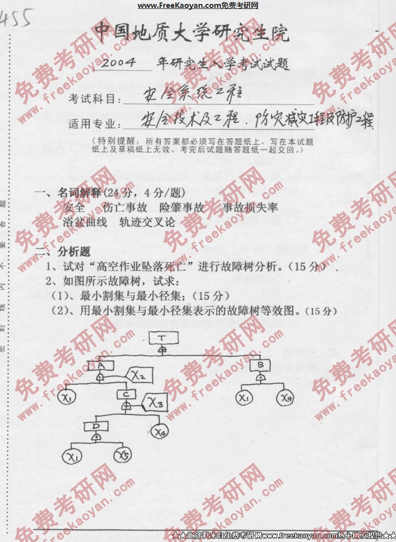 中国地质大学(武汉)2004年半岛在线注册真题-安全系统工程