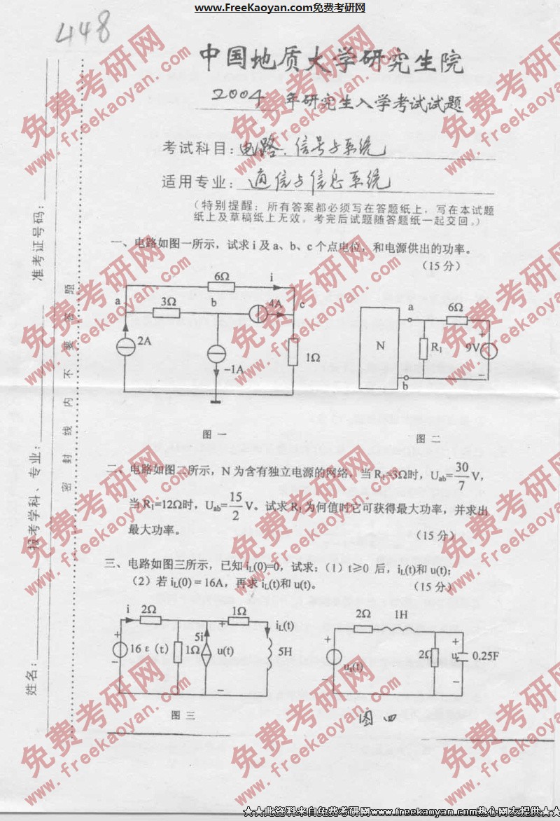 中国地质大学(武汉)2004年半岛在线注册真题-电路、信号与系统