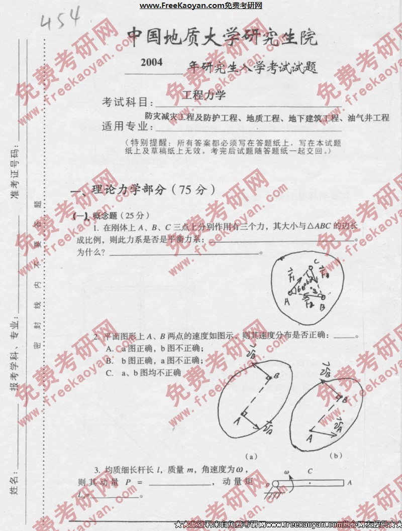 中国地质大学(武汉)2004年半岛在线注册真题-工程力学