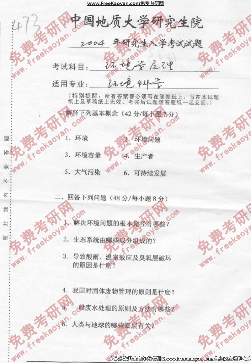 专业课半岛在线注册经验 本站小编 FreeKaoyan 2018-01-23中国地质大学(武汉)2004年半岛在线注册真题-环境学导论