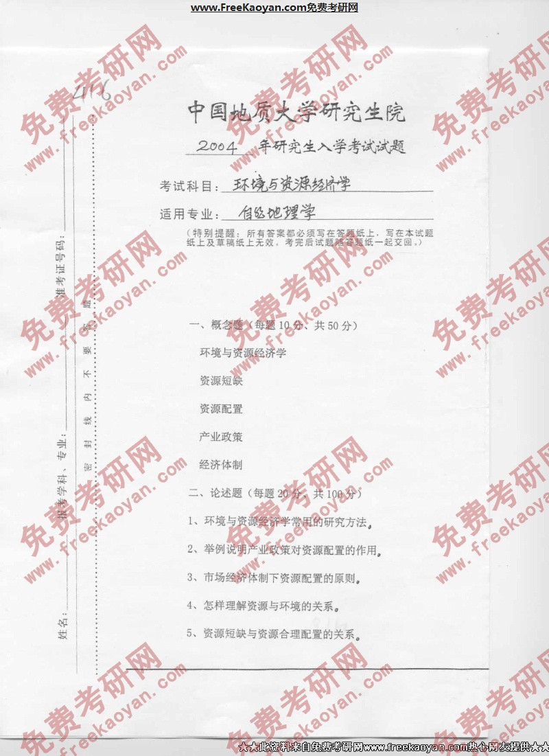 相关话题/半岛在线注册真题 中国地质大学 环境 经济学 资源