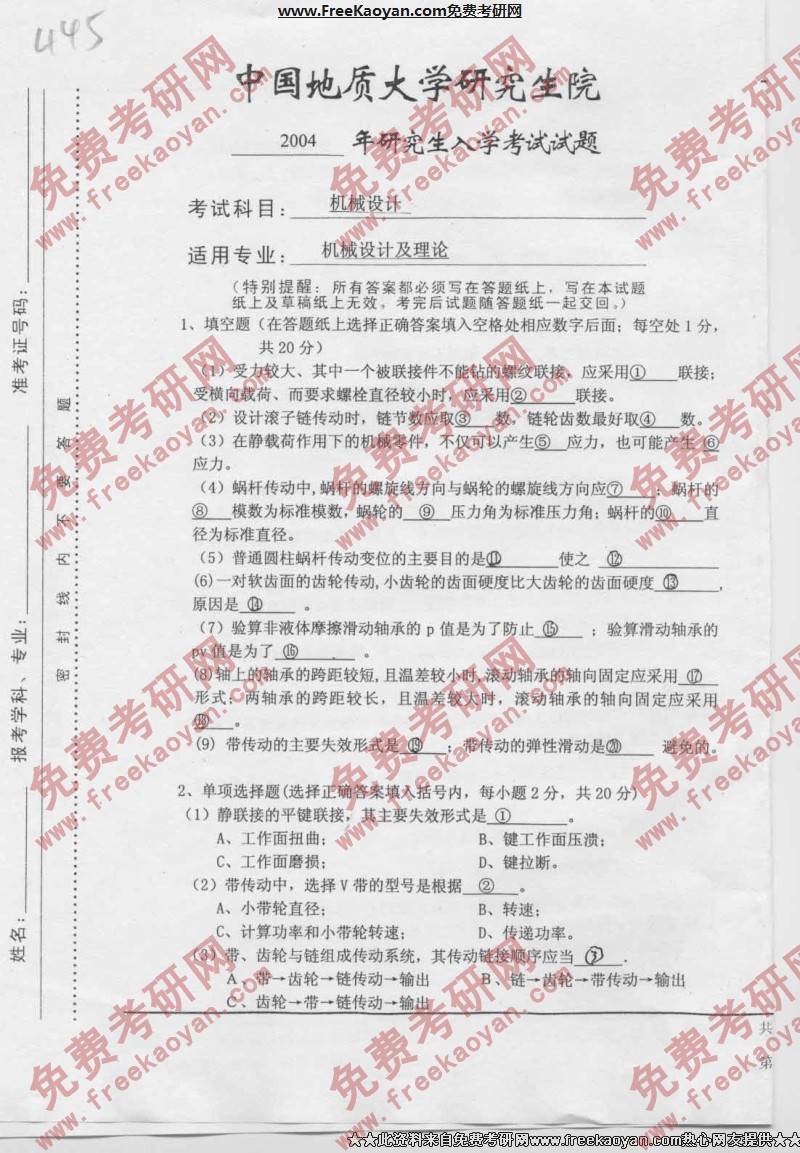 中国地质大学(武汉)2004年半岛在线注册真题-机械设计