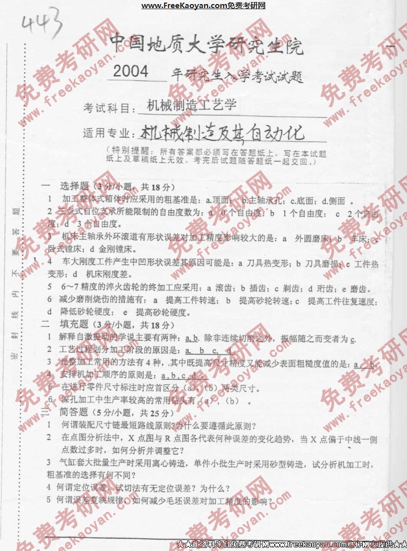 中国地质大学(武汉)2004年半岛在线注册真题-机械制造工艺学