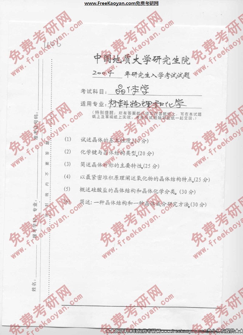 相关话题/半岛在线注册真题 中国地质大学 晶体