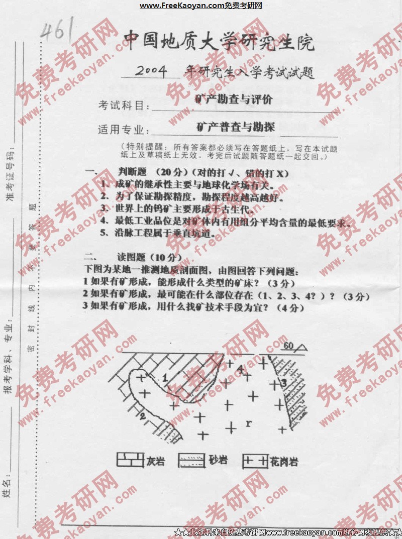 中国地质大学(武汉)2004年半岛在线注册真题-矿产勘查与评价