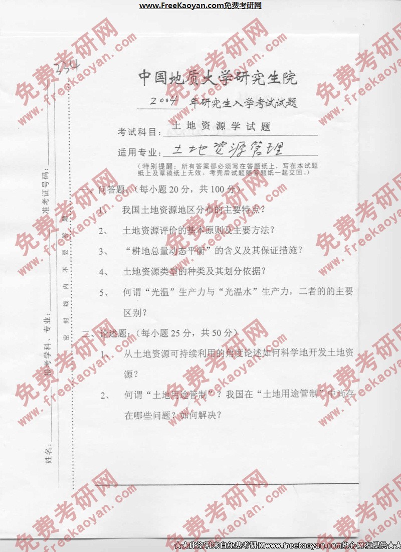 相关话题/半岛在线注册真题 中国地质大学 土地资源