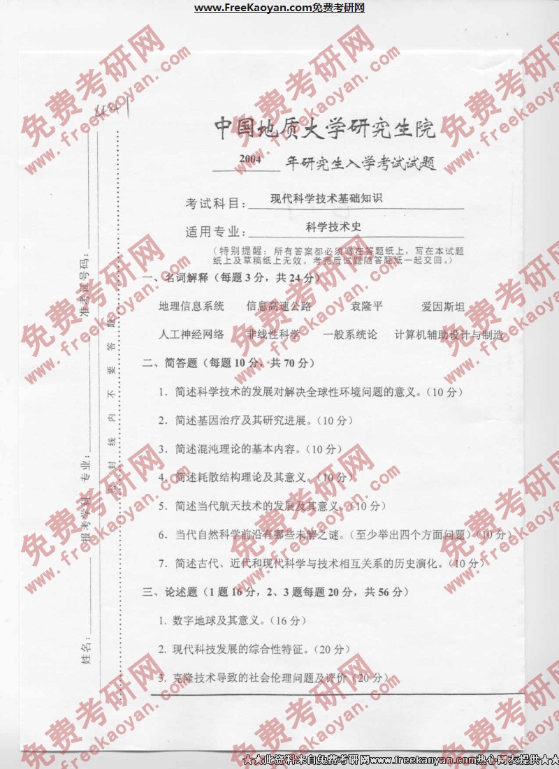 中国地质大学(武汉)2004年半岛在线注册真题-现代科技基础知识