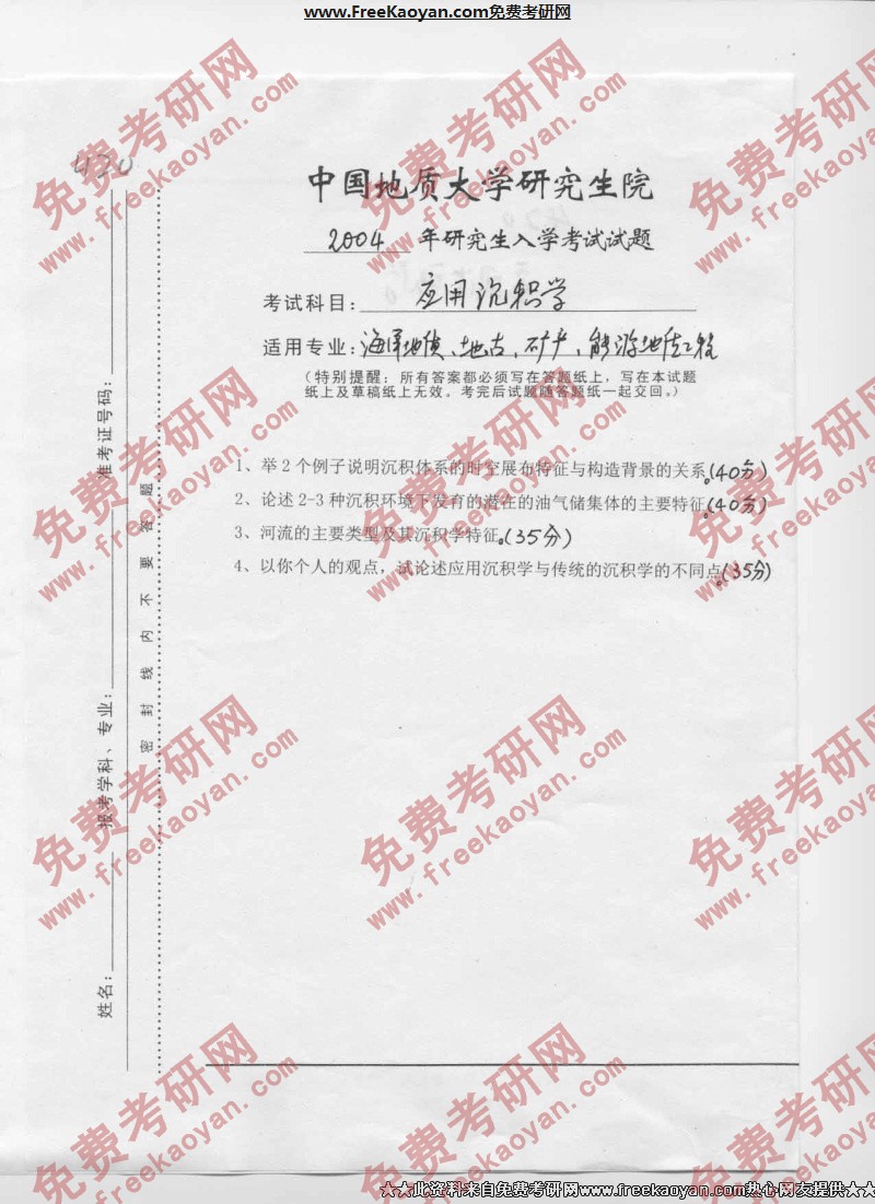 中国地质大学(武汉)2004年半岛在线注册真题-应用沉积学