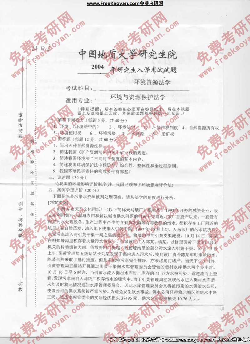 相关话题/半岛在线注册真题 中国地质大学 资源 法学 环境