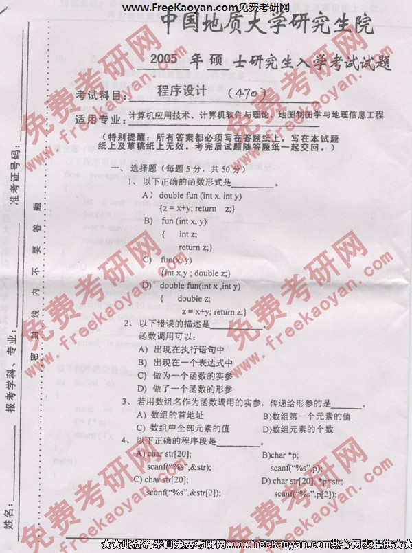 专业课半岛在线注册经验 本站小编 FreeKaoyan 2018-01-23中国地质大学(武汉)2005年半岛在线注册真题-C语言(资源)
