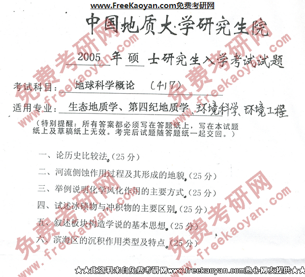 专业课半岛在线注册经验 本站小编 FreeKaoyan 2018-01-23中国地质大学(武汉)2005年半岛在线注册真题-地貌学与第四纪地质学